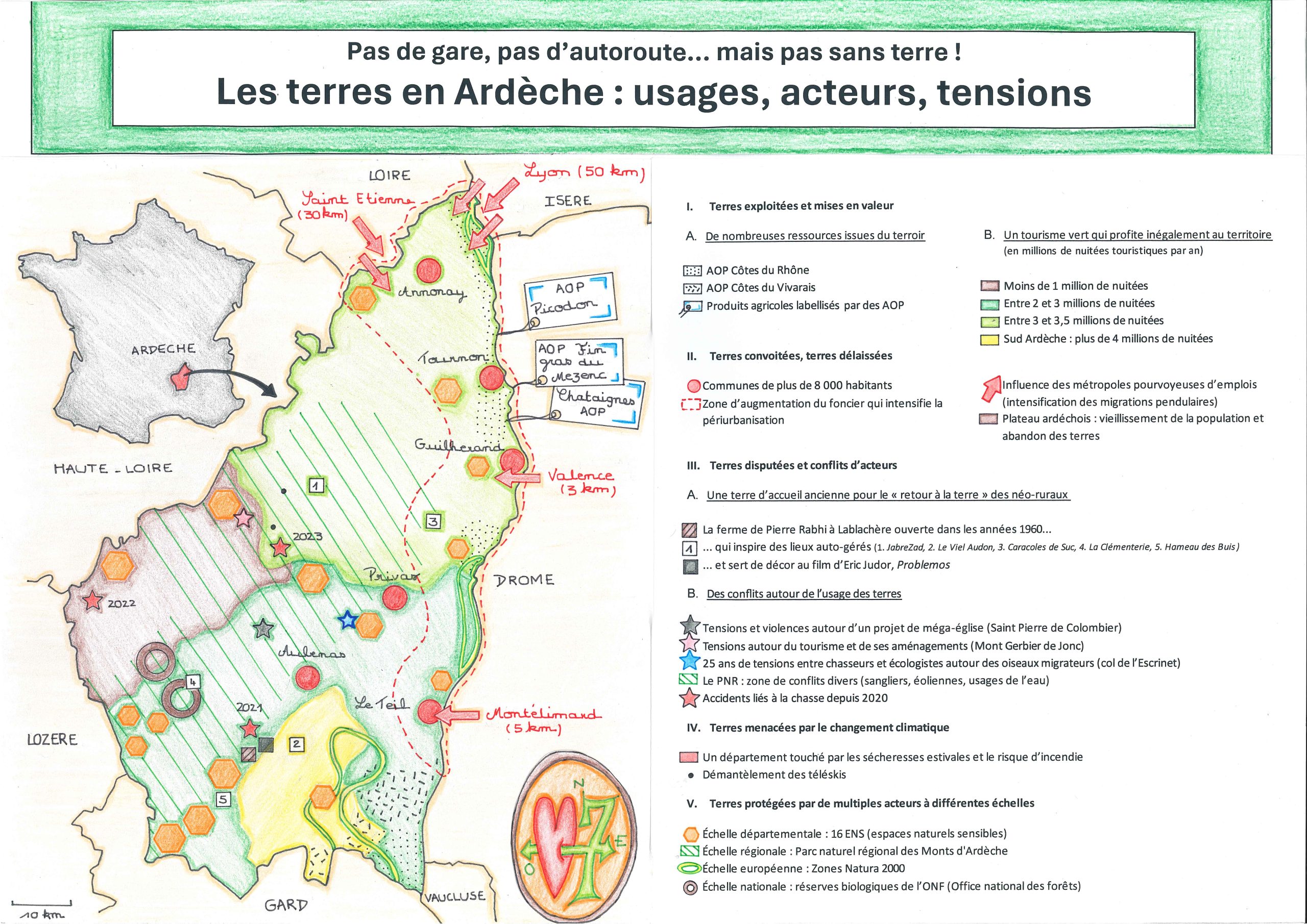 la carte me plais bien car il y a de belle couleur et que les élément de la légende son présent sur la carte en plus j’aime bien l’Ardèche car c’est montagneux donc le fait qu’on parle des tensions , changement climatique est bien j’apprécie