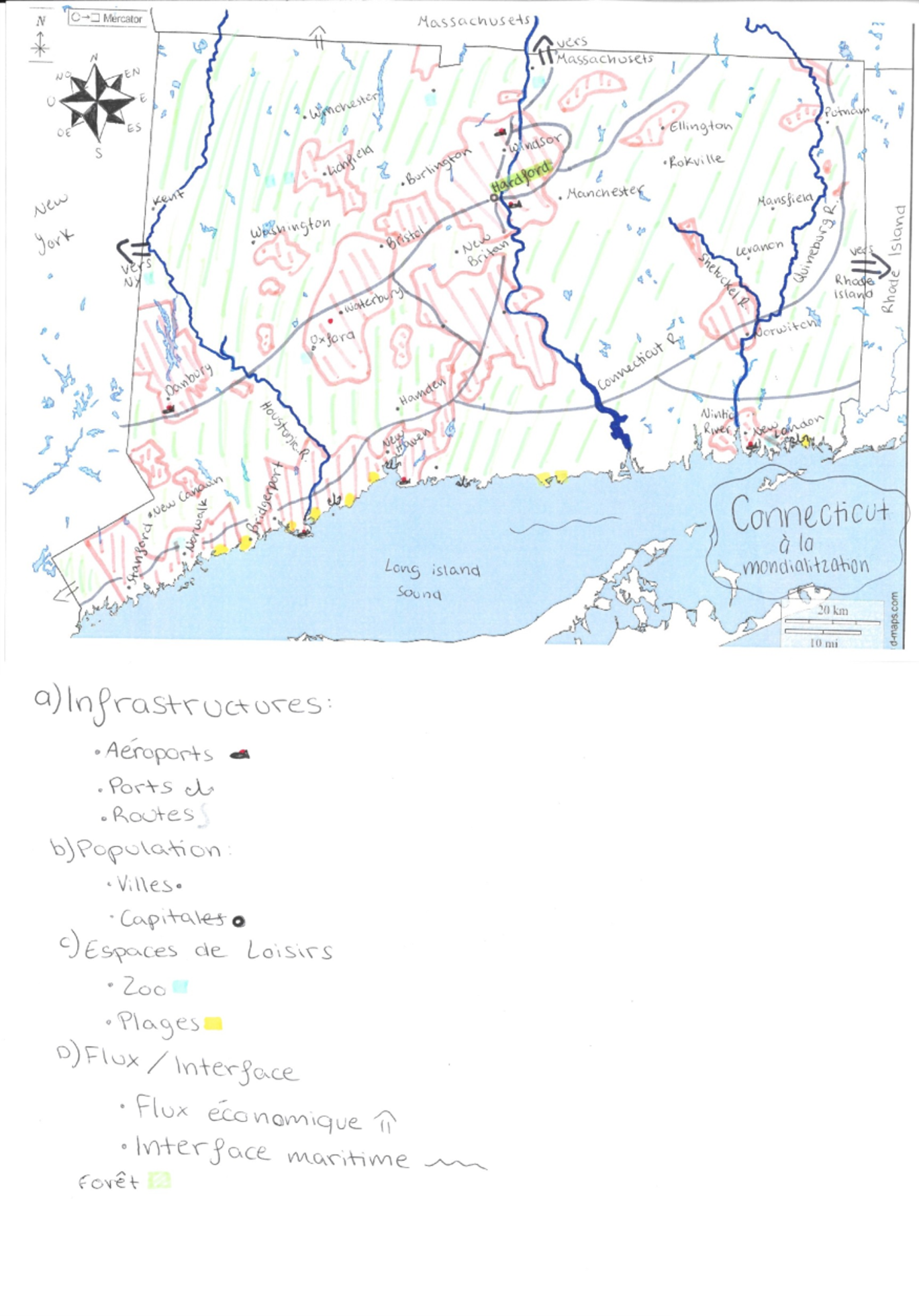 -La légende n’est pas encadrée ce qui réduit la compréhension. Sur la carte il y a des zones en rouge et ce n’est pas indiqué sur la carte. Vous auriez dû mettre la légende dans un cadre avec un titre. A chaque fois que vous marquez quelque chose, écrivez d’abord le nom puis deux petits point et pour finir le symbole utilisé.
