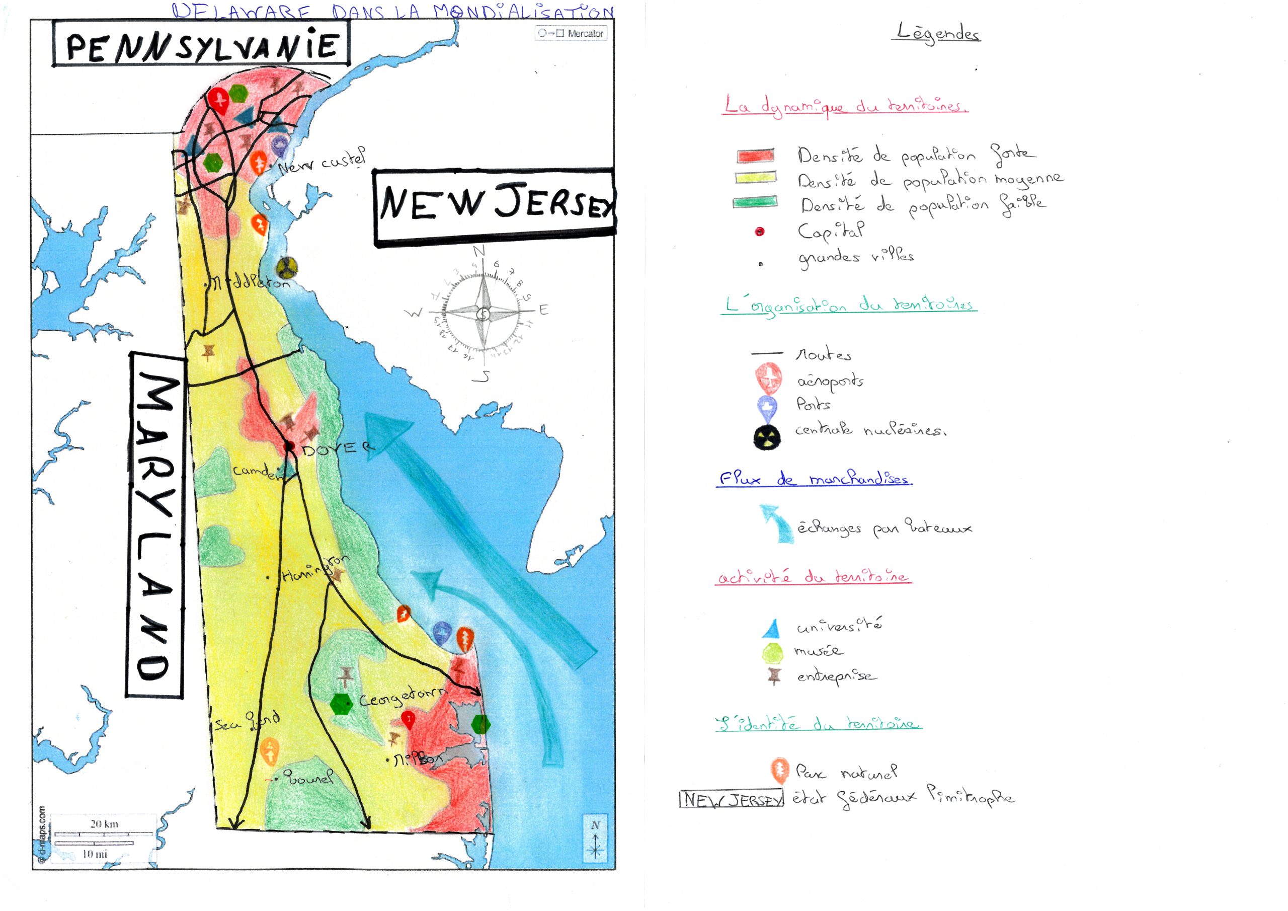 Je trouve votre carte très belle.Quand je suis allée voir les cartes du Delaware,j’ai vu la votre en première car elle est très colorée et j’ai même décidée de la regardée pendant mon temps libre.Je trouve que le coloriage est soigné,les symboles choisis pour la légende sont sympas mais ils sont un peu trop claires sur la légende.Les traits auraient également pu être tracés à la règle et la rose des vents aurait pu être un peu plus prononcée mais elle est très belle.Je vois que vous avez bien travaillez.Bonne continuation à vous:)