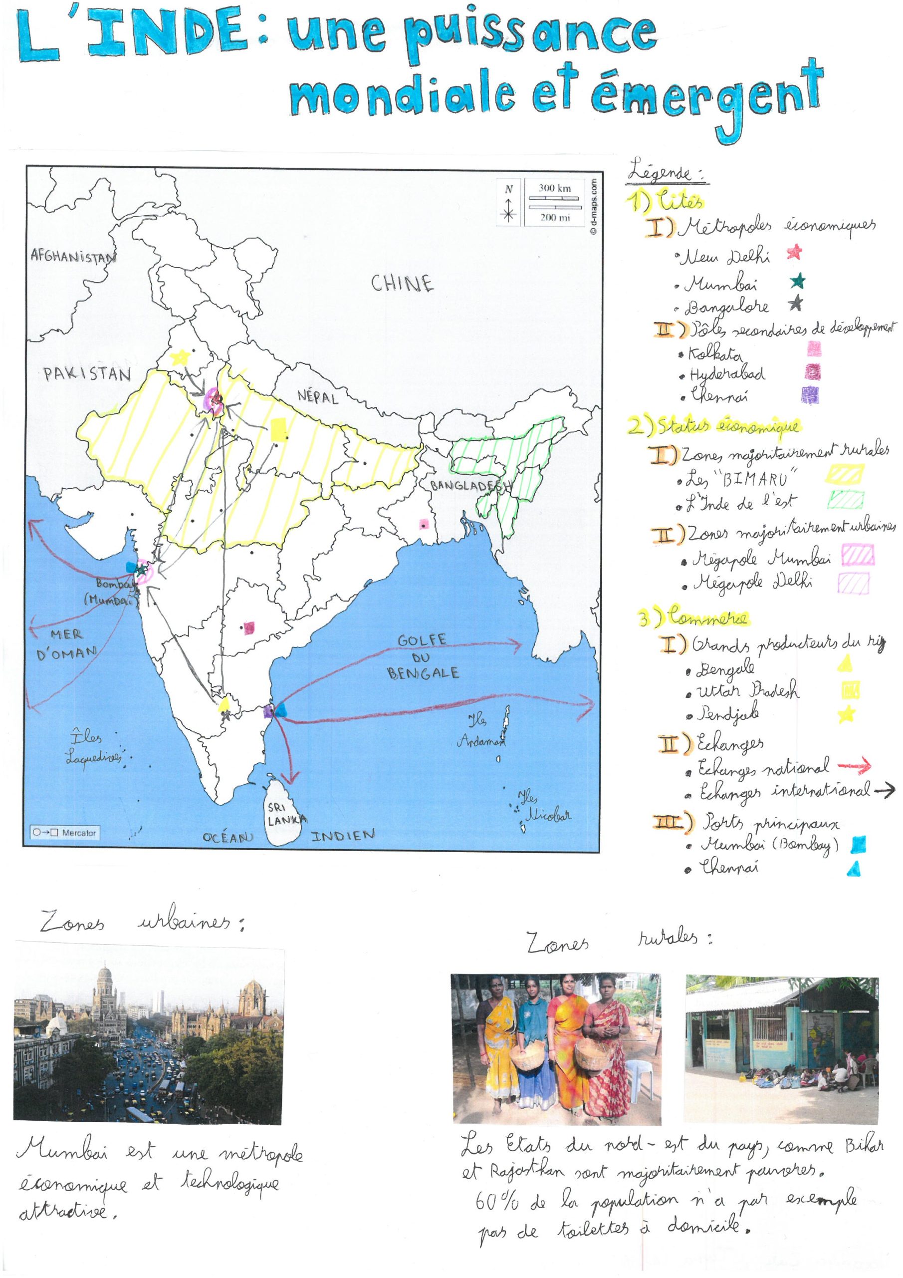 Bonjour, tout d’abord, où est votre rose des vents ? Votre légende est détaillée mais c’est dommage d’avoir trop ciblé certains points (vous auriez dû généraliser les principales métropoles économiques par exemple).
