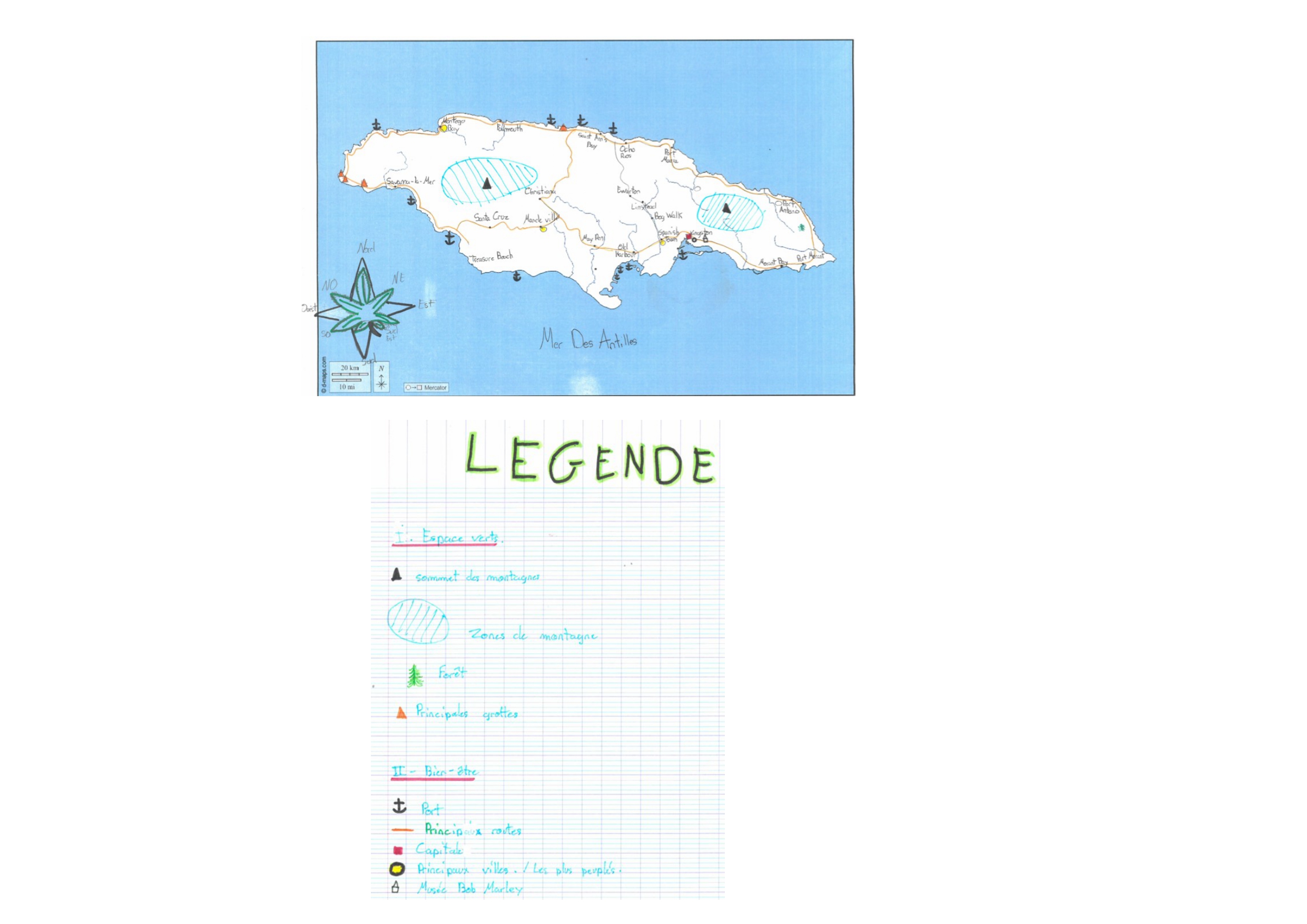 Votre carte est belle en soi, la légende est bien rangée, bravo. Mais les écritures sont très petites et pas assez soignée. Les informations sont intéressantes mais pas assez nombreuses, c’est dommage. Ça aurait été mieux de faire la légende sur une feuille blanche et de mettre un titre.
