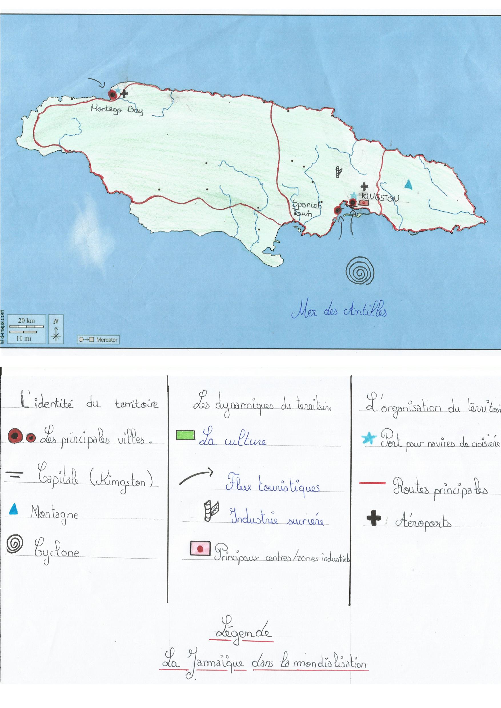 je trouve votre carte très propre et très lisible mais c’est dommage d’avoir oublié le titre. je n’ai pas trop compris a quoi servait les cultures dans votre légende, et elle est mal organisé ( normalement il y a un ordre pour les points, les lignes, et les surfaces qui n’est pas respecté ). Sinon votre carte réponds très bien à la question sur la mondialisation.