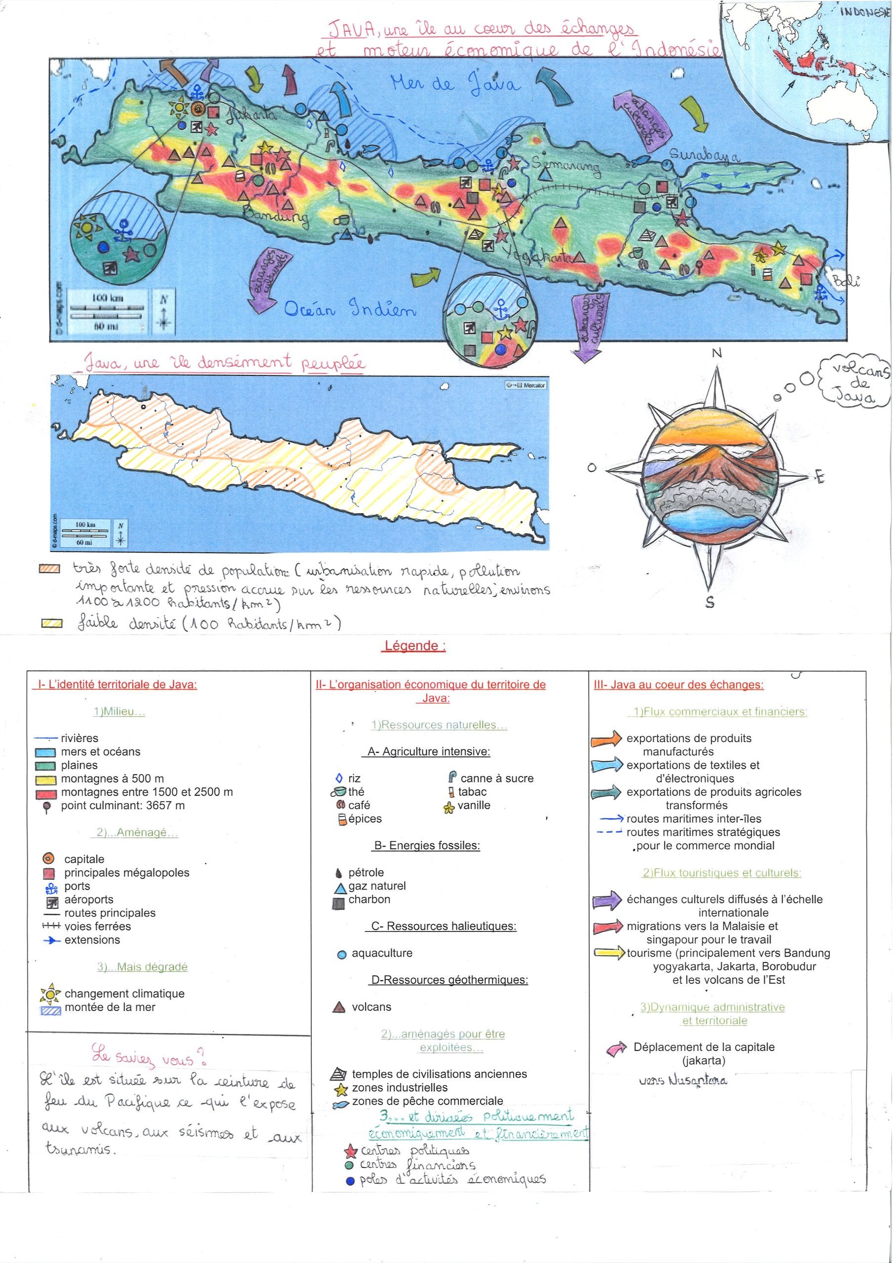 La carte est très belle, elle est bien structuré, le coloriage est très bien fait elle est claire la légende est propre je trouve ça bien le fait qu’il y ait deux cartes C’est juste dommage que la deuxième carte soit pas très complète
