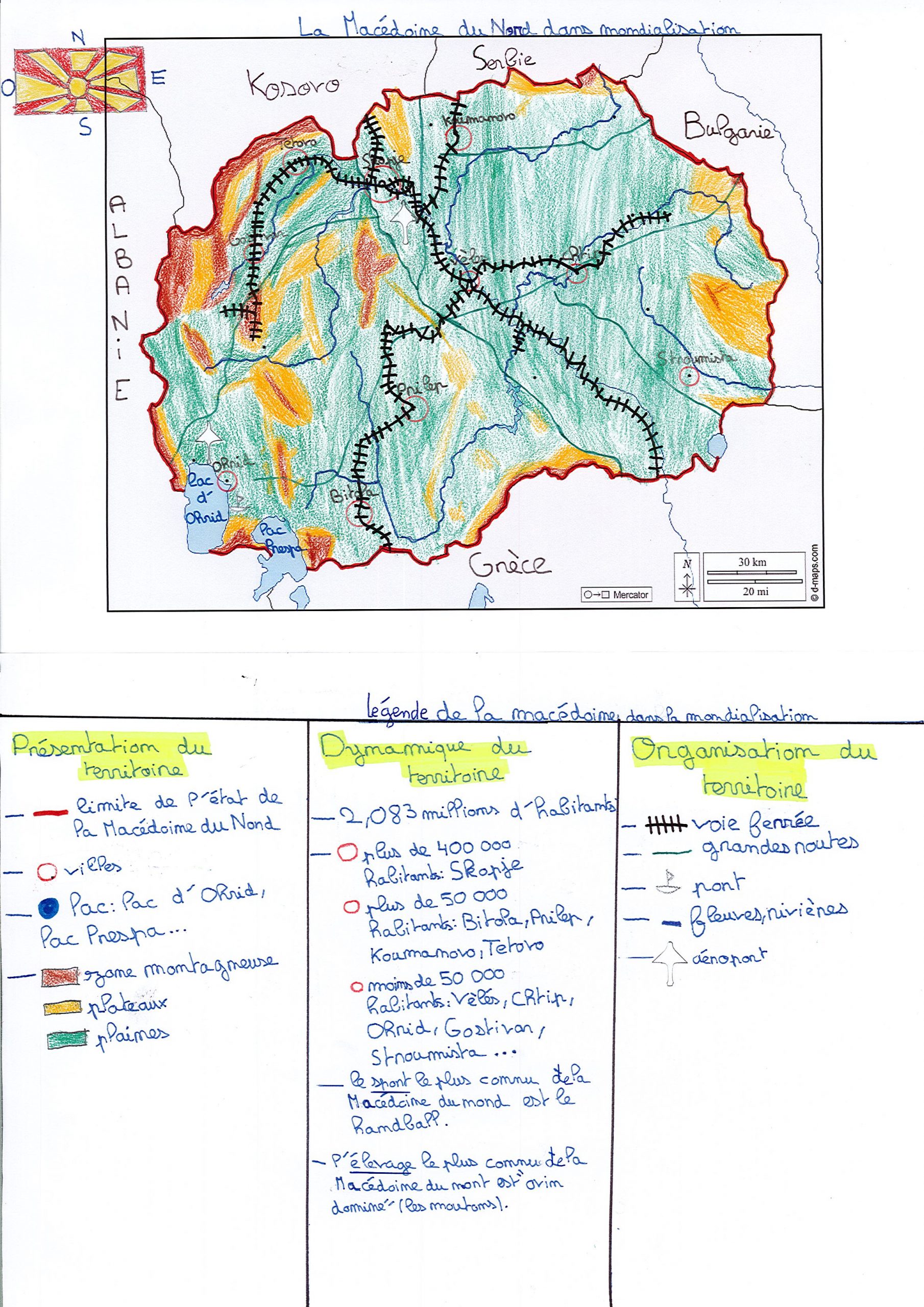 Votre carte est très belle et complète. Les couleurs sur la carte ce voit bien cependant il aurait fallu tous colorié du même côté. La légende est complète et c’est vraiment cool d’avoir mis le drapeau de la macédoine du nord.
