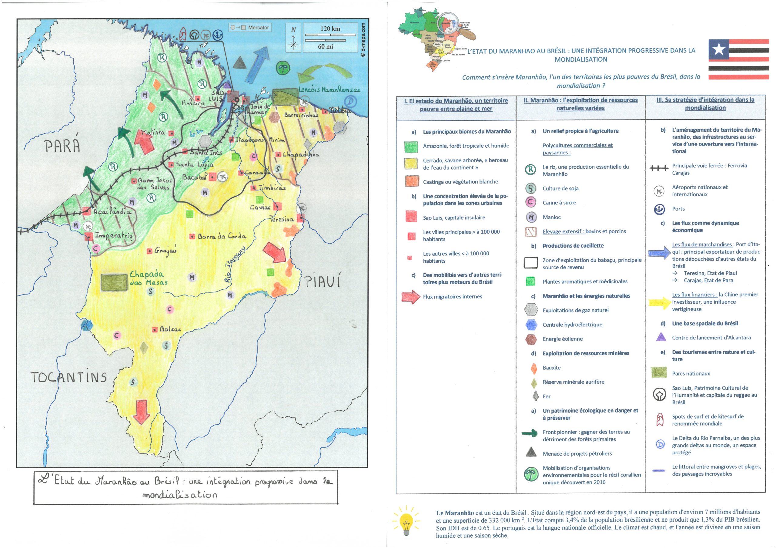 Bonjour, le texte de présentation sur le Maranhão est très utile, sa présente bien Maranhão et c’est bien présenter. Votre légende est très bien organiser et complète, on y retrouve bien tous sur la carte, bravo pour votre magnifique légende. Vous nous avez tout bien expliquer et vous avez mis une carte pour montrer ou c’est, c’est très utile . Votre carte est très propre et bien colorié. BRAVO pour votre superbe carte. Le seule point négatif est que on voit un peu les très sur votre coloriage et vous auriez pu colorie les villes qui se trouve autour de Maranhão.