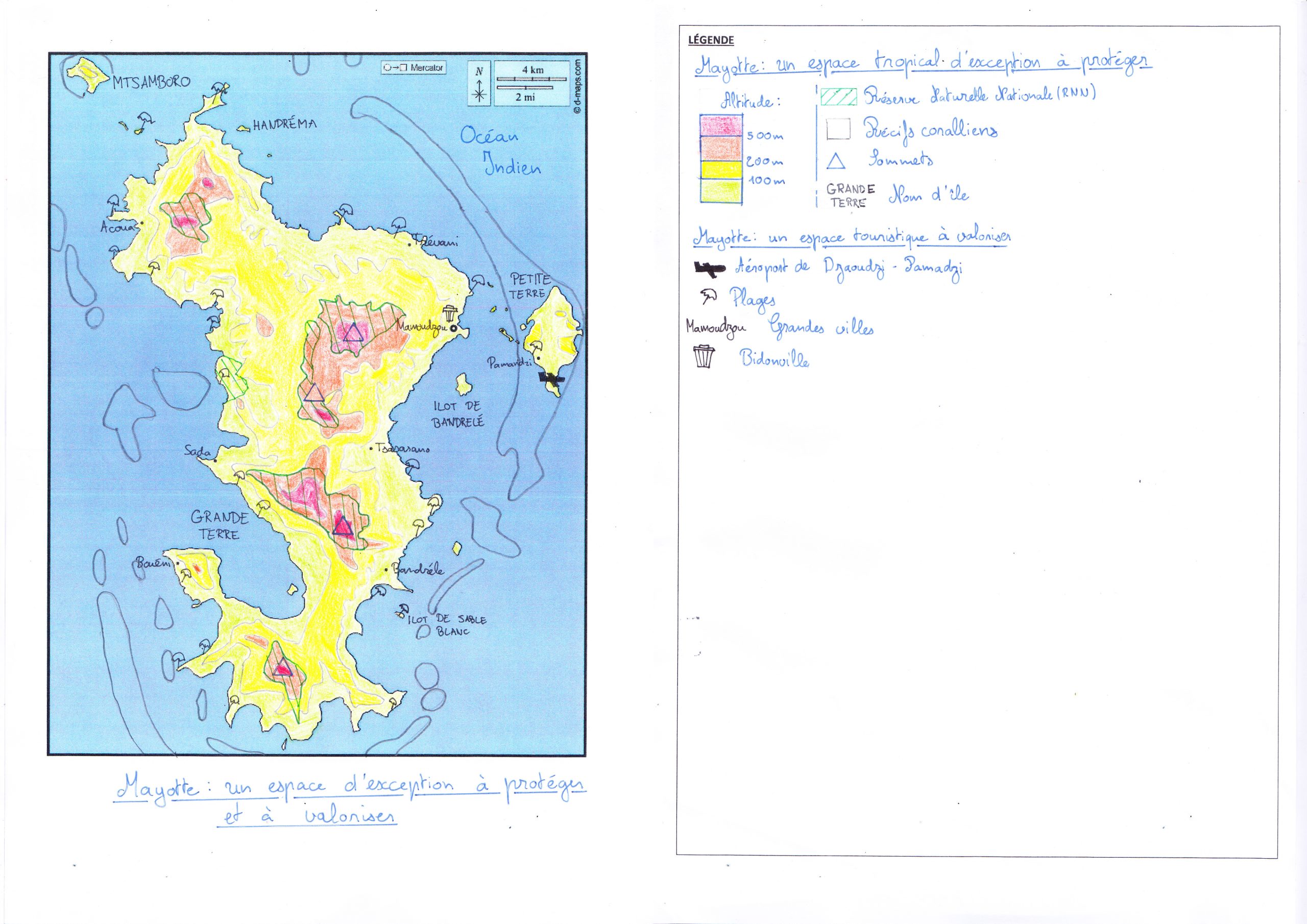 Je pense que la carte est trop chargée de figurés spécifique des figurés plus simple aurait été plus adapté notamment pour les bidonvilles .Les délimitations pour les récifs coralliens sont claires et propres.