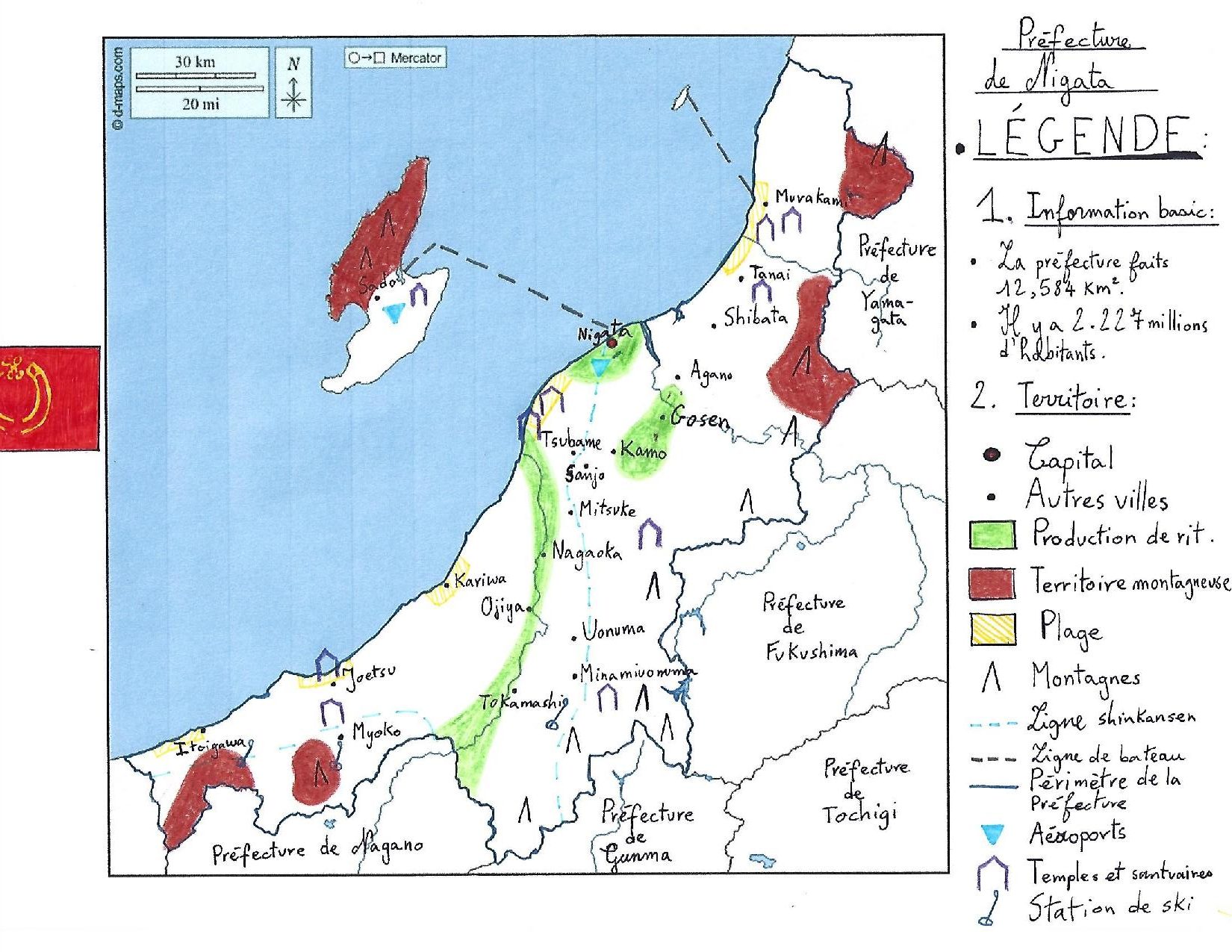 bonjours, votre carte est très bien faite mais il y a des défaut. les point positif la légende est lisible la carte et un peu près bien colorié les pont négatifs sont pas assez colorié et pas trés lisible en haut de la légende Niigata est mal écrit et la légende est minimum en trois titre bonne continuation aurevoir merci.