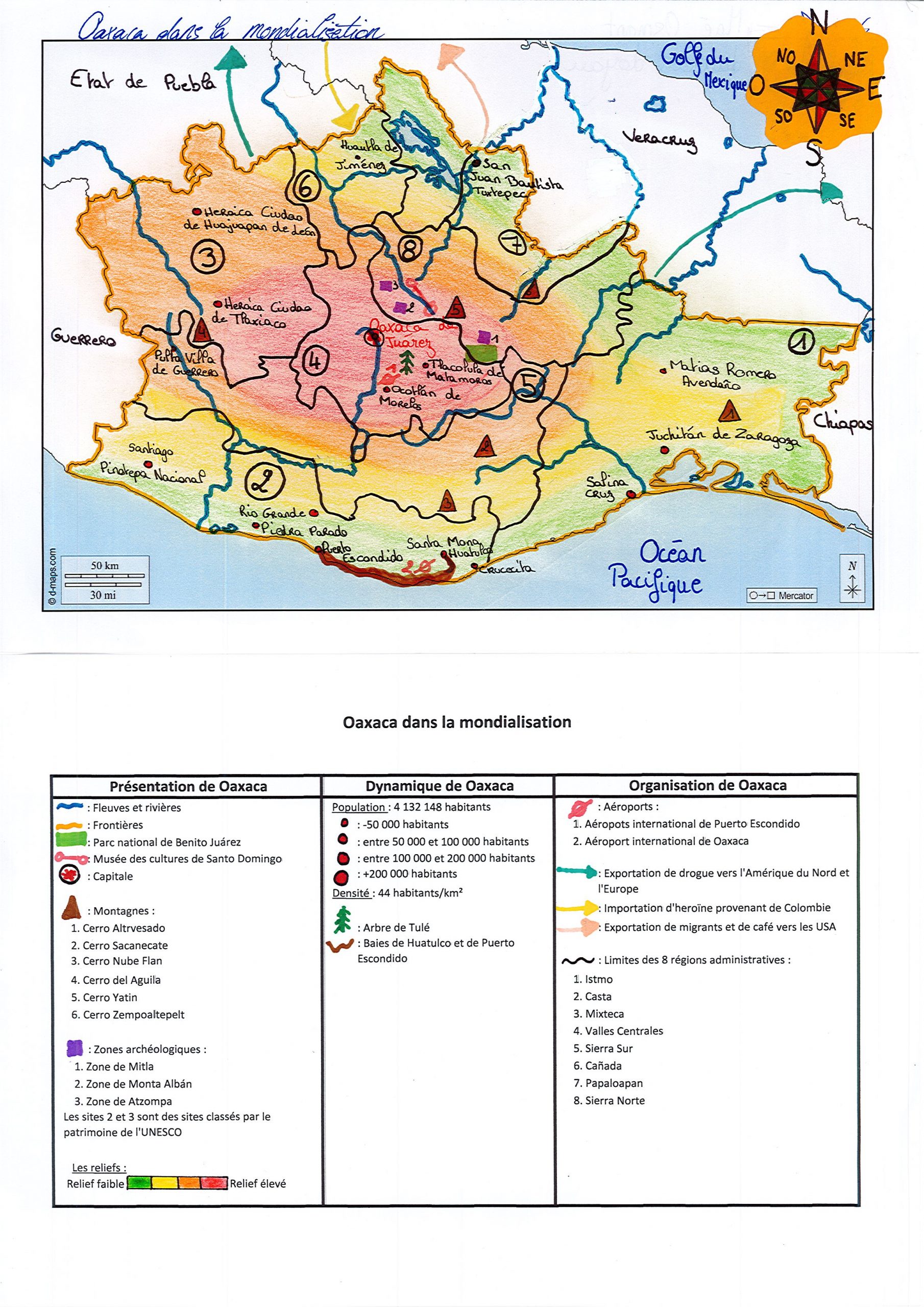 je tenais à vous féliciter de votre carte qui est très belle, le coloriage est vraiment bien et l’écriture est lisible (essayez de la faire un peu plus grosse la prochaine fois) ,la légende est complète et bien organisé mais les couleurs des écritures n’est pas indiqué, mieux vaut les indiquer (océans, régions autour…) et les symboles représenté dans la légende ne sont pas très bien fait , sinon la Rose des vents est faites de manière petite et d’une autre couleur de fond ce qui l’a fait ressortir et je trouve qu’elle est bien faite bravo, la prochaine fois pour la population essayer de ne pas mettre de points avec du rouge sinon on peut confondre, je vous conseille de mettre différentes couleurs (visible) dans le rond sinon je vous félicite de cette carte car elle répond au sujet bonne journée 🙂.
