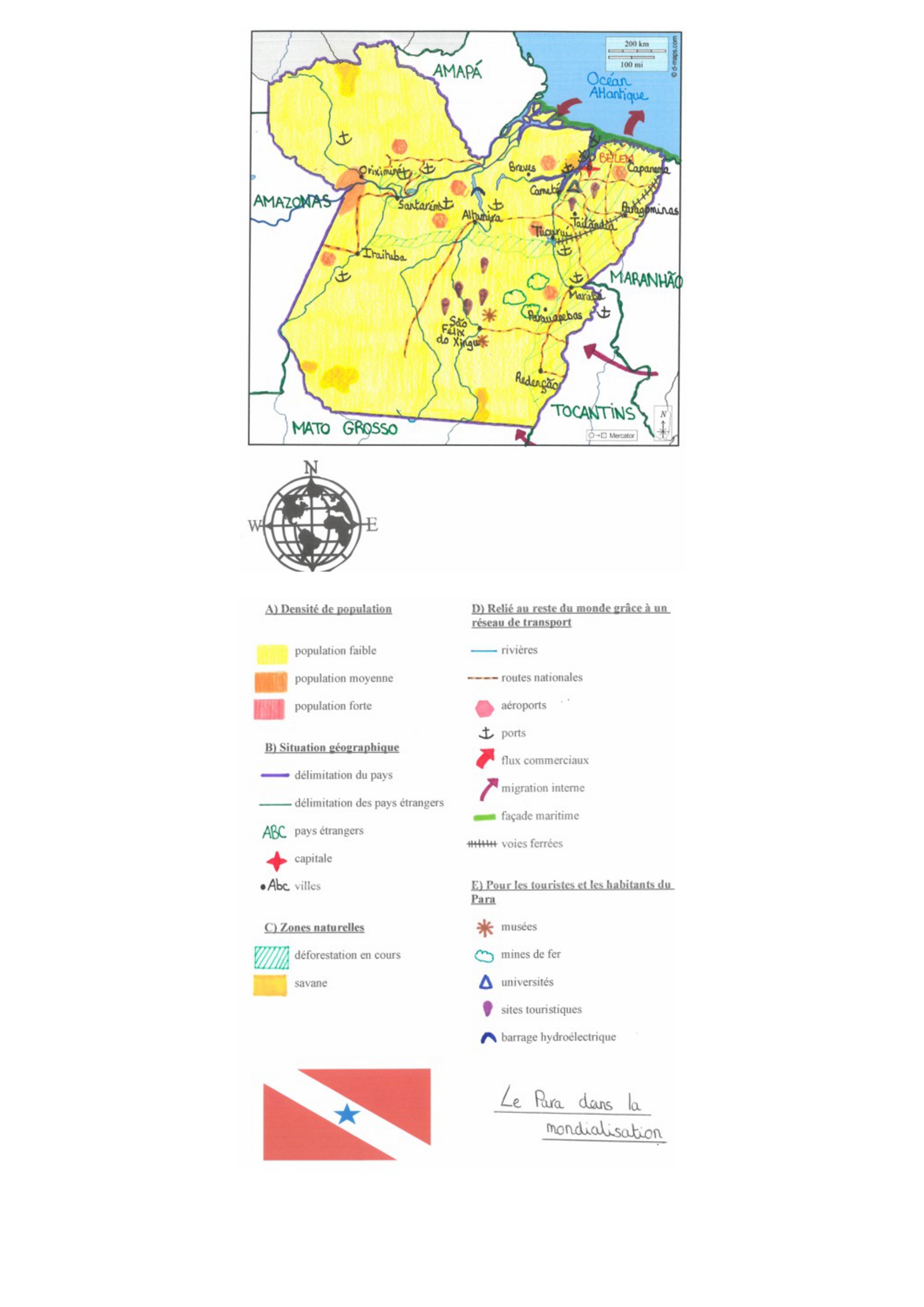 Pour la prochaine fois mieux vaut faire votre rose des vents vous même car sur celle ci on ne voit pas le S de sud ce qui est dommage comme le fait que le titre de légende soit en dessous ce qui aurait sûrement pu être évité la légende n’est pas très bien organisé mais le coloriage est vraiment bien, sinon la partie dans la légende sur la mondialisation est assez complète, je vous en félicite.