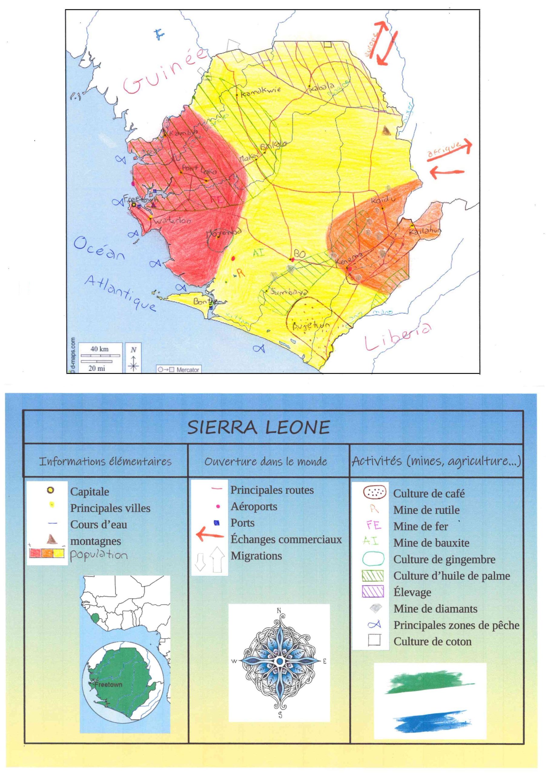 – Merci d’avoir situé Sierra Leone. (Sur une carte et avec les noms des pays à coté.)