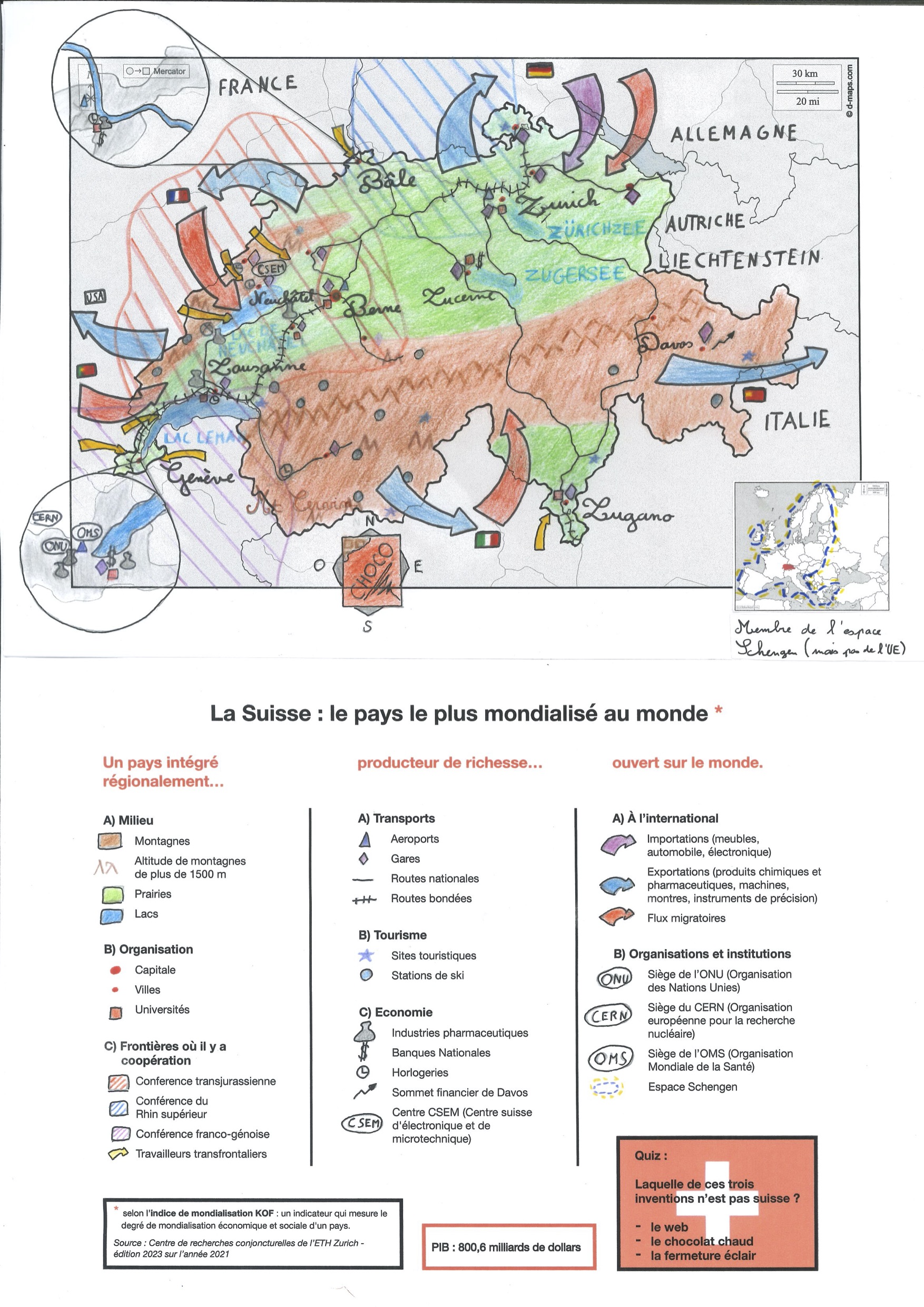 Tout d’abord, je trouve que votre carte est magnifique. Le coloriage est bien soigné, l’écriture est également bien soigné. J’aime beaucoup le quiz, dommage qu’il n’y a pas la réponse.. La légende est assez rempli.